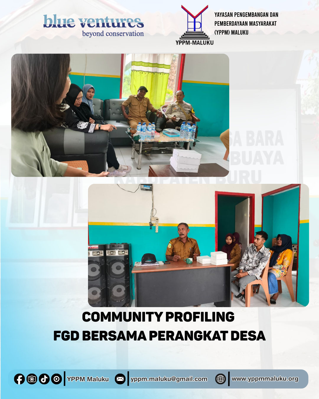 YPPM Maluku bersama Blue Ventures melaksanakan kegiatan community profiling melalui diskusi bersama perangkat desa di Desa Bara. Kegiatan ini bertujuan untuk memperoleh gambaran menyeluruh mengenai kondisi sosial, tata kelola desa, serta potensi dan tantangan perikanan yang dihadapi masyarakat pesisir.