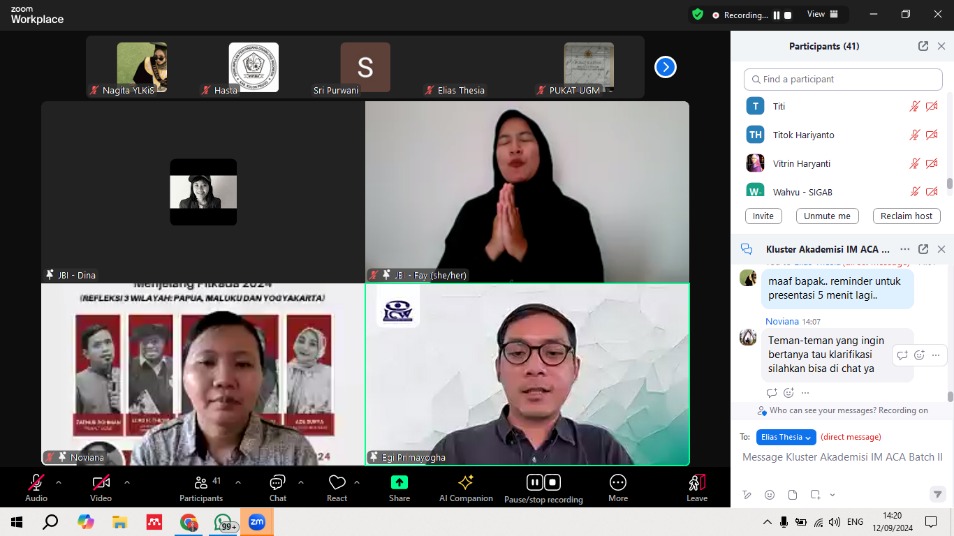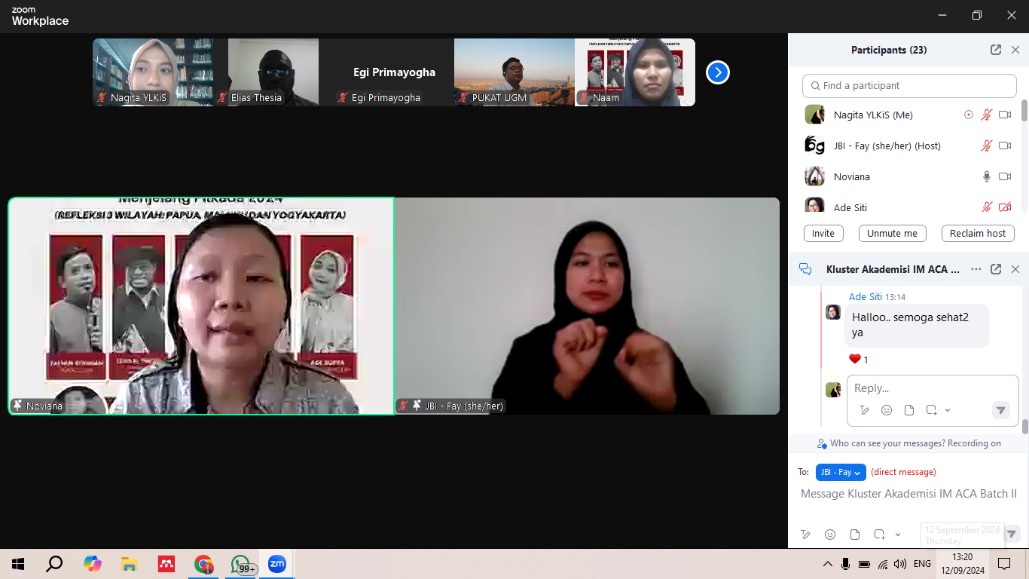 Kamis, 12 September 2024, Alumni Indonesia Memanggil Anti Corruption Academy (IM ACA) Batch II Kluster Akademisi bersama IM 57+ Institute berkolaborasi dengan Yayasan LKiS dan YPPM Maluku menyelenggarakan sebuah diskusi nasional yang bertajuk “Memerangi Korupsi Politik Transaksional Menjelang Pilkada 2024.” Acara yang diadakan secara daring via Zoom Meeting ini mengangkat refleksi dari tiga wilayah, yakni Papua, Maluku, dan Yogyakarta, dalam menghadapi tantangan korupsi politik menjelang pemilihan kepala daerah (Pilkada) serentak. Diskusi ini dimoderatori oleh Tri Noviana dari Yayasan LKiS, yang juga berfungsi sebagai platform untuk memperkuat kesadaran publik terhadap bahaya korupsi dalam proses demokrasi, khususnya dalam politik transaksional yang kerap kali terjadi di Indonesia.