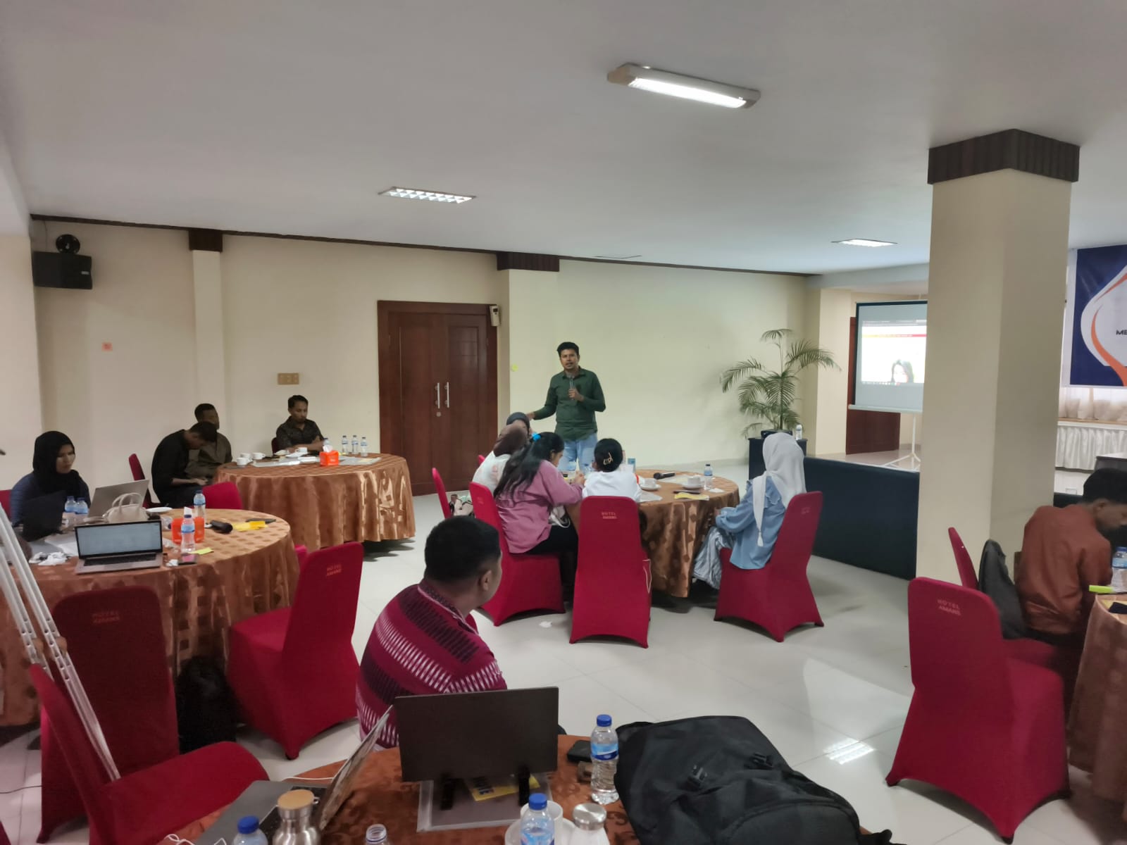 Hari kedua, pembahasan diperluas dengan analisis politik dan ekonomi guna memahami aktor-aktor yang berpengaruh dalam dinamika kebebasan berekspresi di Maluku. Peserta diajak untuk menelusuri keterlibatan penguasa formal maupun non-formal, aktor ekonomi, serta kelompok kepentingan yang turut membentuk arah kebijakan dan membuka atau menutup ruang kebebasan sipil. Pendalaman terhadap relasi kekuasaan ini memperlihatkan bahwa isu kebebasan berekspresi tidak bisa dilepaskan dari konfigurasi politik lokal, distribusi sumber daya, serta kepentingan ekonomi yang mengitari sektor-sektor strategis di Maluku. Dari pemahaman tersebut, peserta kemudian menyusun strategi advokasi lintas isu dengan pendekatan yang lebih tajam, terintegrasi, dan realistis. Mereka merancang langkah-langkah advokasi yang mempertimbangkan risiko, peluang koalisi, hingga mekanisme penguatan kapasitas internal agar gerakan dapat bertahan dalam jangka panjang. Sesi akhir di hari kedua ditutup dengan perumusan strategi keberlanjutan lintas isu yang bertujuan membangun kerangka kerja dan rekomendasi tindak lanjut bersama bagi para aktor muda di wilayah ini.